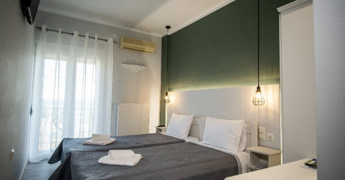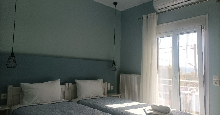 Localizare: Diamanti Studios este localizat in iteriorul insulei Lesbos, mai exact pe costa golfului Kalonis. Capitala Mytilene se afla la 41.8 km sau aproximativ 42 minute de mers cu masina, iar Aeroportul International Mytilene se afla la 48 km sau aproximativ 50 min de mers cu masina.