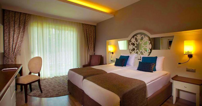 Camerele sunt decorate modern, dispun de minibar, seif, baie cu dus, uscator de par, aer conditionat central, podea de marmura si mocheta, filtru de ceai si cafea, WC, televizor led, satelit.