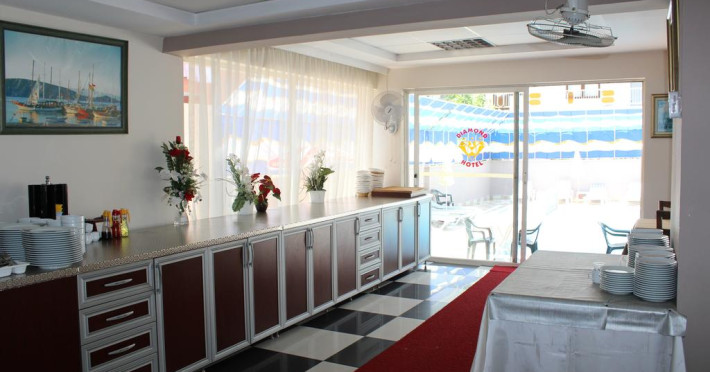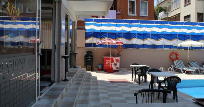 Diamond Hotel este o proprietate de 3 stele situată în Alanya care oferă un restaurant și o piscină în aer liber cu șezlonguri și umbrele de soare. Proprietatea are servicii de recepție cu program non - stop și închirieri auto. Se oferă acces gratuit la internet Wi-fi în spațiile publice. Parcarea este posibilă pe stradă, în imediata apropiere a proprietății.