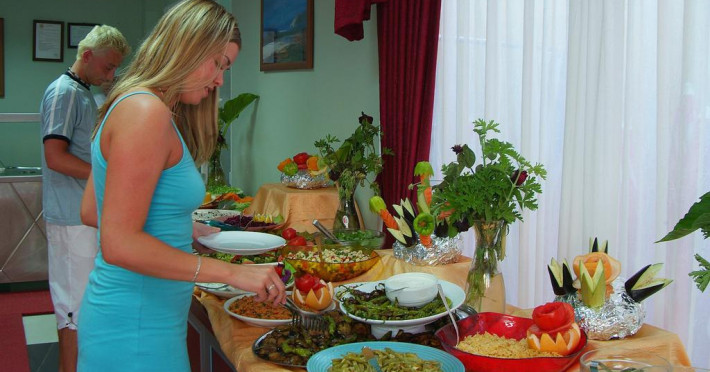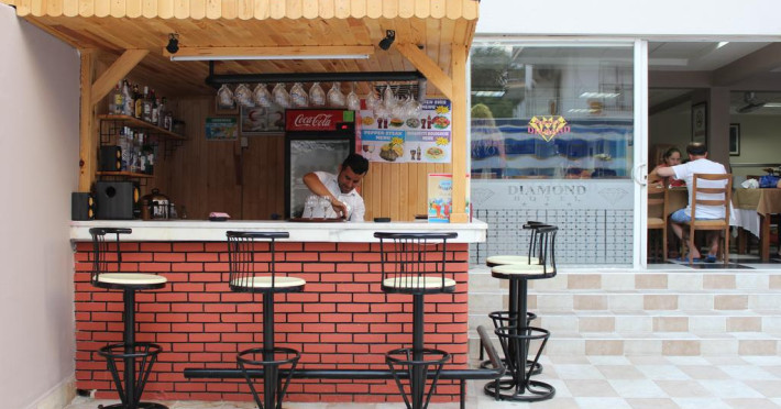 La Diamond Hotel oaspeții au la dispoziție un restaurant care servește mâncare în stil bufet și à la carte. Masa poate fi servită atât în interior, cît si în aer liber, pe terasă, în funcție de vreme. Oaspeţii pot avea diverse băuturi răcoritoare sau alcoolice la bar. În cadrul proprietății există și un snack bar care servește băuturi și gustări.