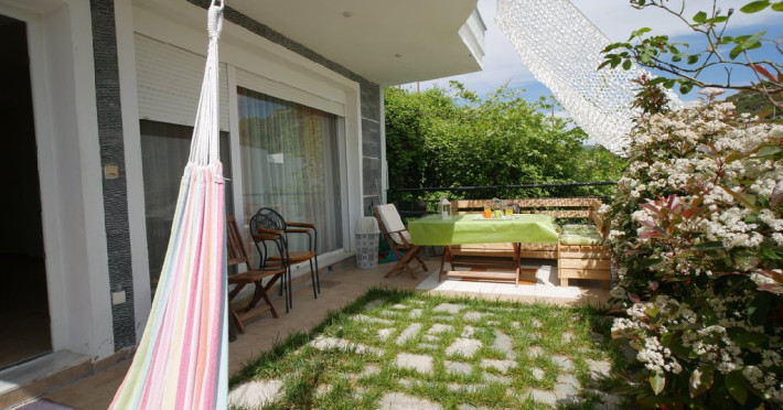 Facilitati camere: Apartamentul se afla la parter si este prevazut cu AC, TV, internet Wi-Fi, telefon, frigider, uscator de par si balcon.