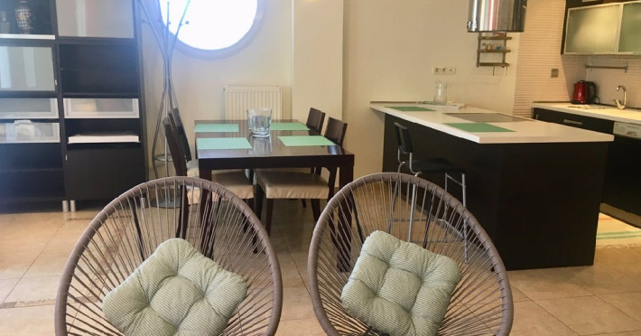 Bucatarie complet utilata: cuptor, cafetiera, prajitor de paine, masina de spalat vase, fierbator, masina de spalat haine.