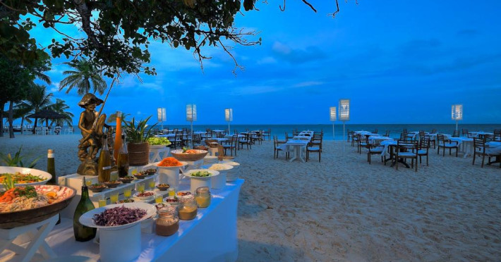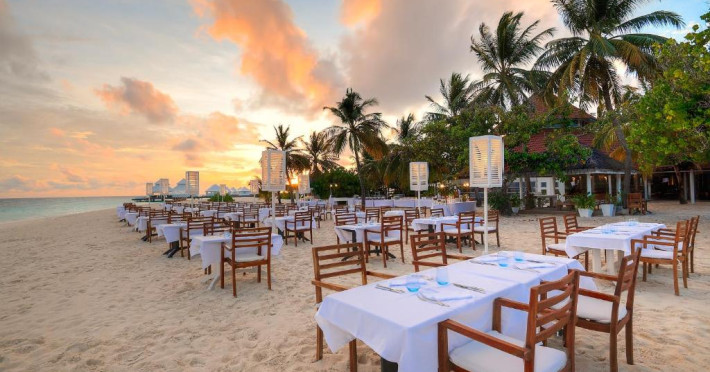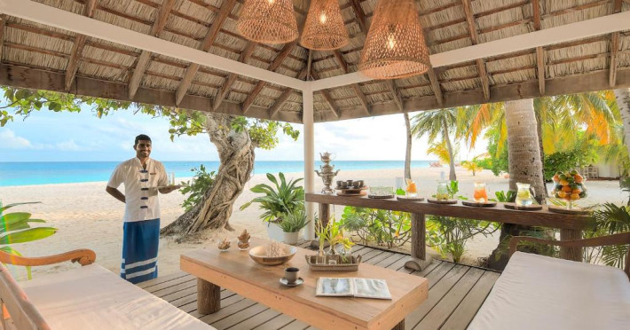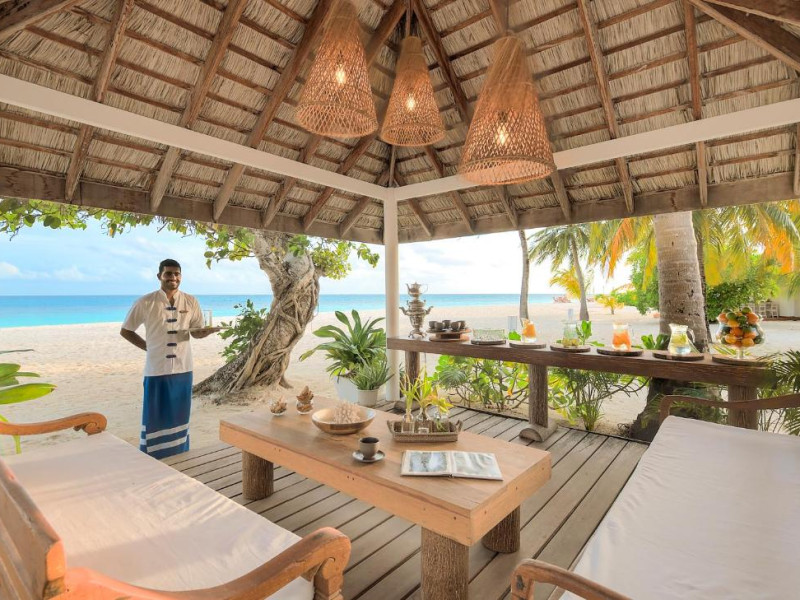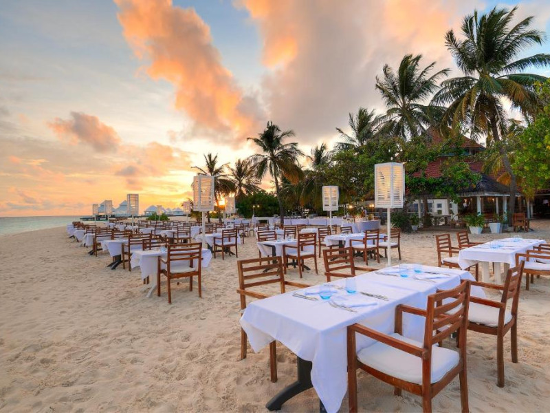 Complexul oferă 5 restaurante diferite, bucătari exceptionali si o pasiune pentru bucătăria de cele mai inalte standarde. Restaurantul Thari Over Water este gratuit numai pentru oaspetii Vilei pe Apă. Restaurantul maldivian Farivalhu, restaurantul japonez Thila si restaurantul cu specific marin Kakuni implică un cost suplimentar pentru toti oaspetii. Barul pe plajă Boli asigură mese usoare si gustări fără niciun cost suplimentar.