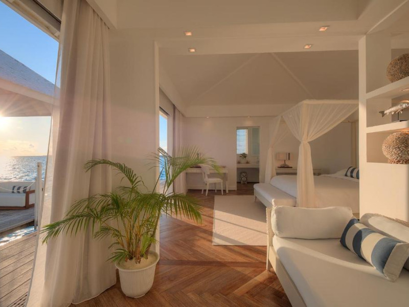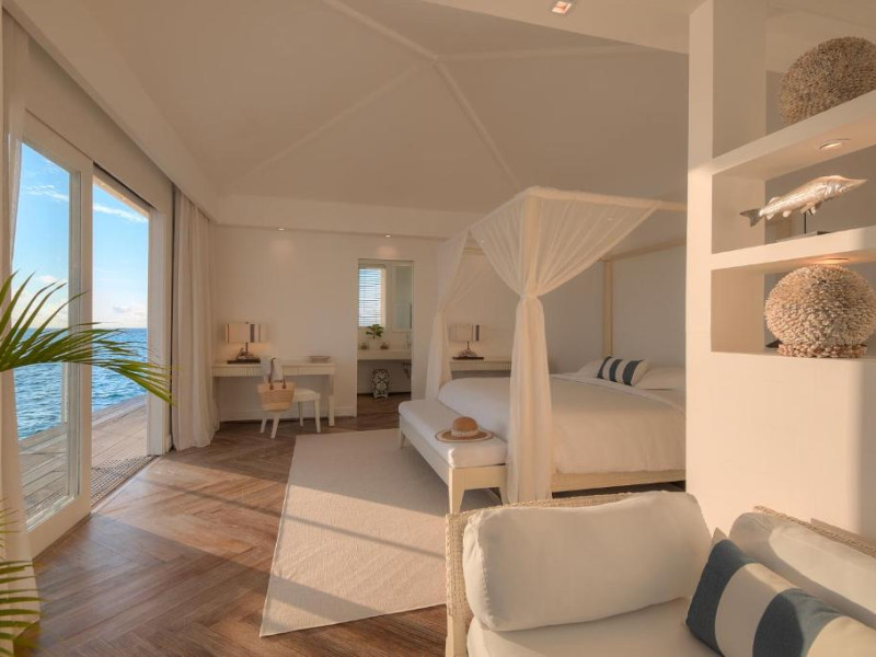 Vilele situate deasupra apei au o terasă mare, cu acces direct la lagună. De asemenea, includ un pat cu baldachin, o zonă de living si o baie privată mare. Bungalourile aflate pe malul mării au o verandă privată cu zonă de relaxare si dus in aer liber. Toate unitătile sunt dotate cu facilităti de ceai/cafea.