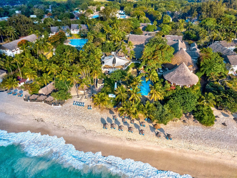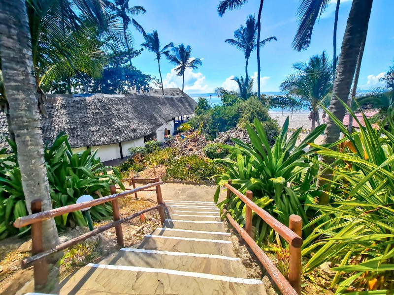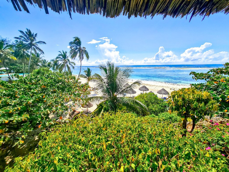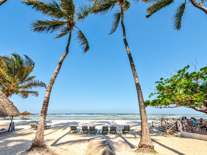 - Situat direct pe plaja Diani Beach, una dintre cele mai frumoase plaje din Kenya
