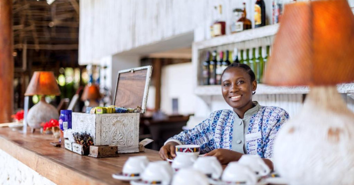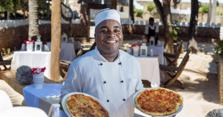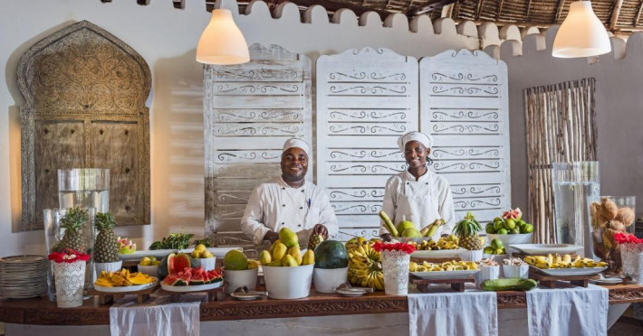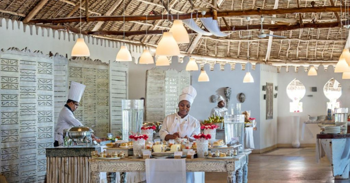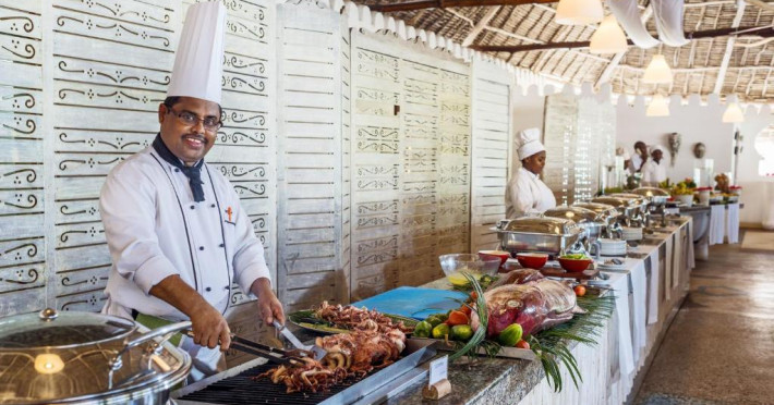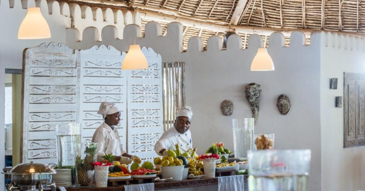 Ocean Reef, restaurantul principal, serveste un mic dejun bogat, pranz si cină, iar complexul organizează seri tematice speciale in fiecare săptămană. Pizzeria Nakupenda oferă pizza si salate proaspete, iar restaurantul Suli-Suli propune un meniu à la carte.