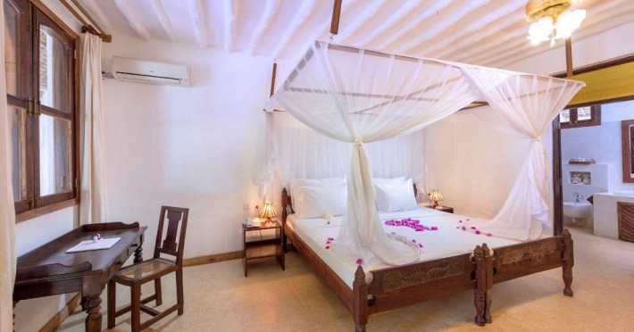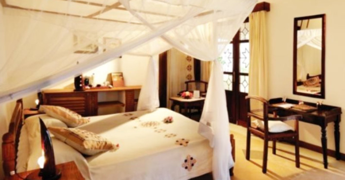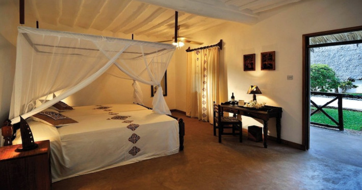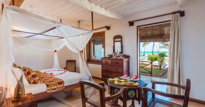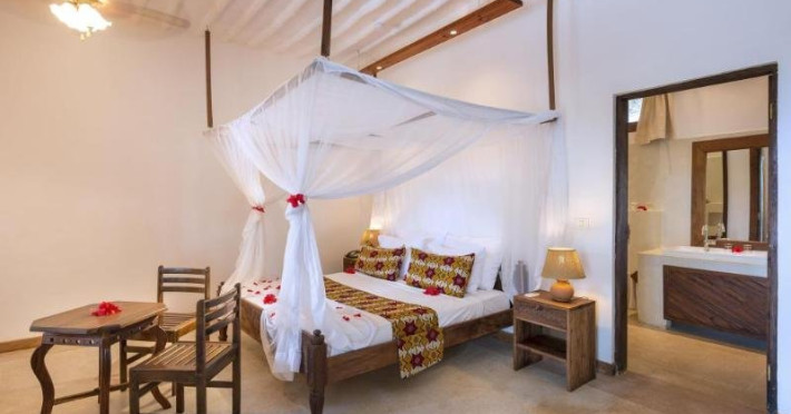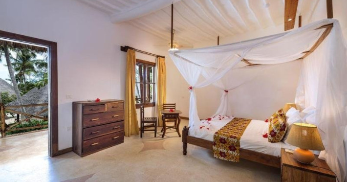 BEACH VILLAS: Cele 30 de vile sunt situate pe plaja si au o veranda privata pentru confortul oaspetilor hotelului. Acestea sunt mobilate elegant in stilul traditional din Africa de Est. Caracteristicile camerei: pat dublu cu baldachin sau doua paturi single cu plasa de tantari, aer conditionat reglabil independent, seif digital, wifi, ventilator, minibar aprovizionat zilnic, facilitati pentru prepararea de ceai si cafea, telefon pentru uz intern, baie mare cu dus, lavoar dublu, uscator de par.