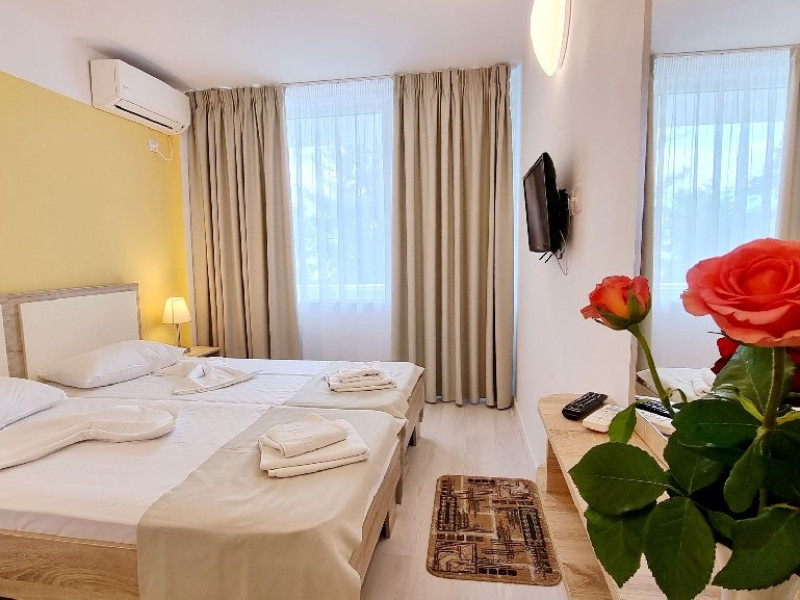 Camera dubla dispune de paturi twin sau matrimonial, baie cu dus, aer conditionat, TV, minibar, telefon.