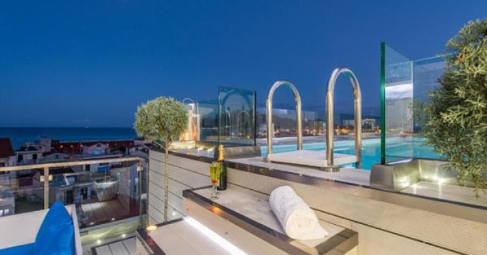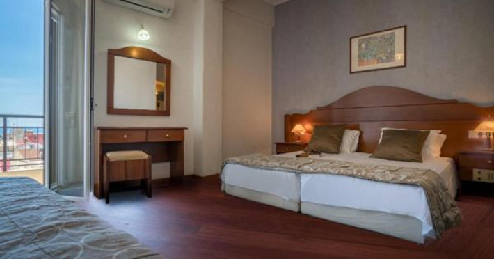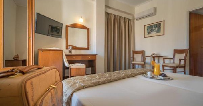 Boasting a 21 m rooftop pool, Diana Hotel is centrally yet quietly located in Agios Markos Square of Zante Town. It offers tastefully decorated rooms and a wellness centre with sauna and hot tub. A mini gym is also available. Opening to a balcony, all air-conditioned rooms at Diana feature earthy tones and warm-coloured wooden furnishings. Each is fitted with a flat-screen, cable TV, a fridge and safe. The private bathroom has a bath or shower. Free WiFi is available in all areas.