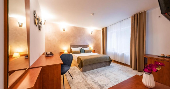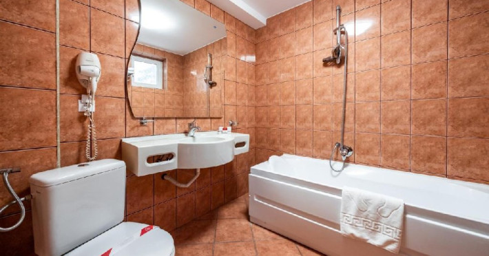 - fiecare camera / apartament are in dotare: televizor LCD cu televiziune prin cablu, seif, minibar, baie proprie (cu uscator de par, cada/ cada cu hidromasaj).