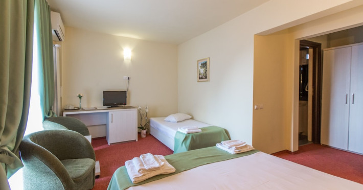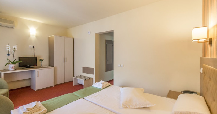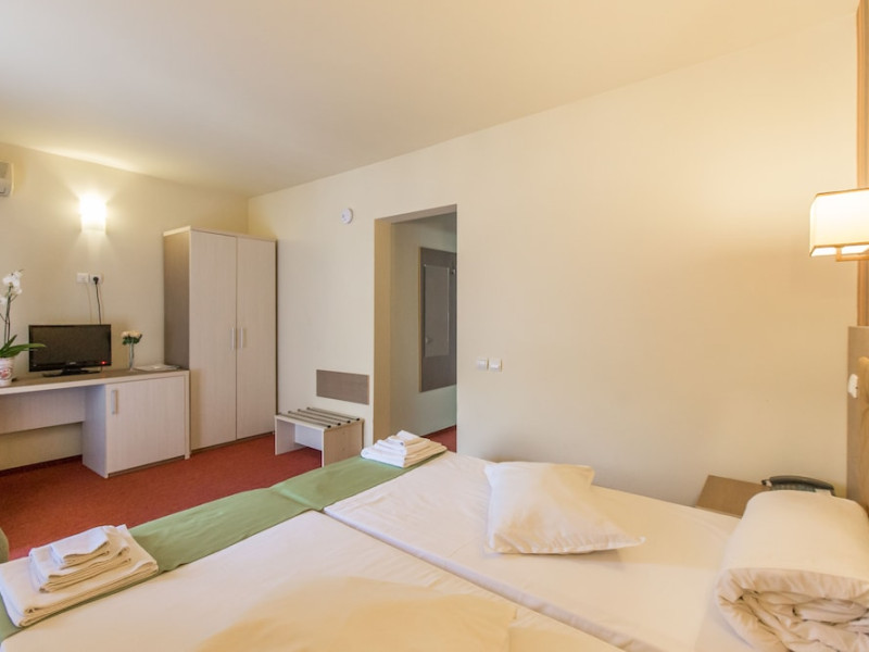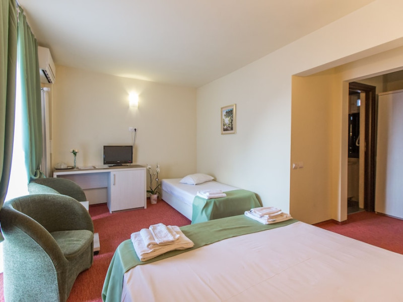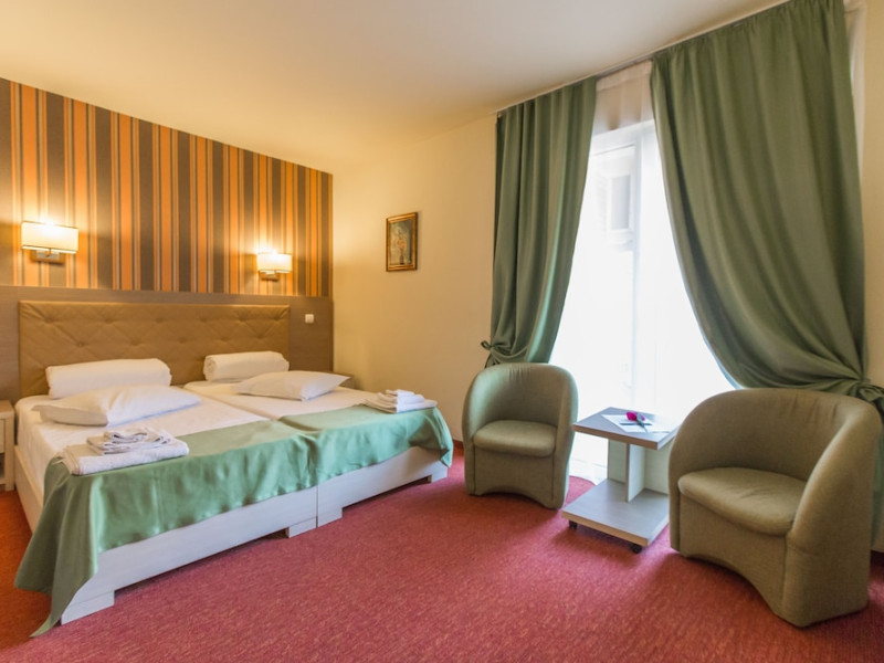 Baile Herculaneâs Bacolux Diana Resort, Herculane enjoys natural surroundings in a large forested area. Located a 2-minute walk from Cerna River, the property is just 820 feet from the town center. WiFi and parking are available free of charge. Bacolux Diana Resort, Herculane âs spacious rooms have modern furnishings and are decorated in shades of red, cream and brown. All have a private bathroom, seating area and TV. Several have a separate bedroom and living room. The à la carte restaurant serves local and International cuisine. Food and drink can be enjoyed in the large dining area or on the terrace. Special diet menus can be arranged upon request. The local train station is 1.9 mi away and Prisaca Lake and the Seven Springs Thermal Baths can be reached by car in 10 minutes or less. Boat trips can be enjoyed along the Danube River 11 mi away. Domogled - Valea Cernei National Park can be reached by car in 30 minutes. Restaurants, bars, cafes and shops can be visited in the townâs center.WiFi is available in public areas and is free of charge. Free public parking is available at a location nearby (reservation is not needed). Pets are not allowed. Children of all ages are allowed. Children 5 and under stay for free when using an existing bed. Children from 6 to 11 years old stay for 65 lei per person, per night when using an available extra bed. People 12 and up stay for 80 lei per person, per night when using an available extra bed. You havent added any cribs. Any type of extra bed or crib is upon request and needs to be confirmed by management. Additional fees are not calculated automatically in the total cost and will have to be paid for separately during your stay.Checkin Time: 16:00Checkin End Time: 18:00Checkout From: 08:00Checkout End Time: 12:00Hotel important information: Please note that the outdoor swimming pool is closed between 15 September 2019 and 15 June 2020.Datorita dinamicitatii domeniului disponibilitatea ofertelor se modifica de la un moment la altul. De aceea ofertele sunt valabile in limita locurilor disponibile. Agentia nu este responsabila pentru eventualele neconcordante care pot aparea intre informatiile privind tarifele si alte detalii din site si informatiile primite in agentie. In aceste cazuri vor avea prioritate, intotdeauna, informatiile primite in agentie.