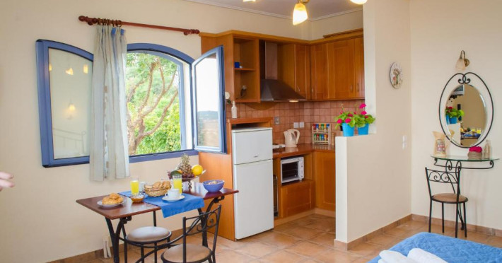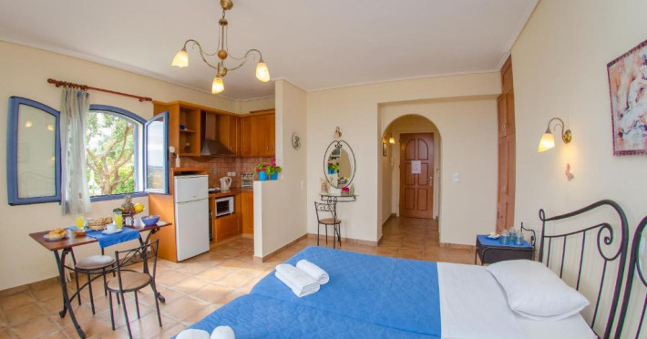 Camerele confortabile de la Diana Studios sunt dotate cu pardoseală de gresie/ marmură, aer condiționat, Tv și seif. Fiecare cameră oferă cană-fierbător și mașină pentru prepare cafea sau ceai. Oaspeții pot solicita serviciul de room service pentru a servi masa sau diverse băuturi. Oaspeții au acces gratuit la serviciul Wi-fi în camere. În camere există baie cu cadă sau duș prevăzută cu foehn. Camerele au balcon cu vedere la mare sau la munte. Curățenia in cameră se face zilnic. Fiecare unitate de cazare include o chicinetă utilată cu frigider, plită de gătit și ustensile de bucătărie. De asemenea, sunt disponibile o zonă de luat masa și un cuptor pentru prepararea mâncărurilor. Proprietatea oferă camere pentru familie cu o suprafață mai mare și un număr mai mare de paturi față de cele standard.
