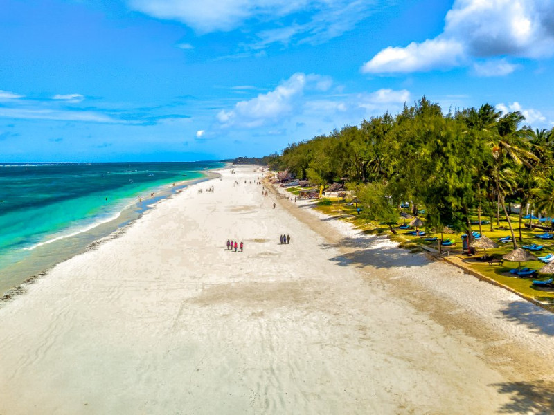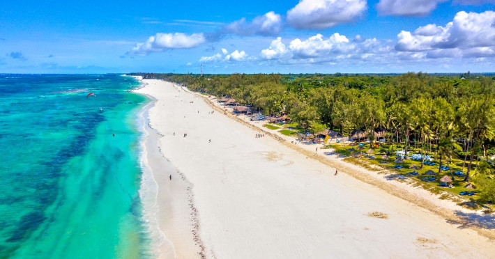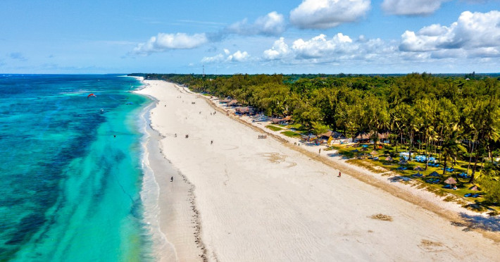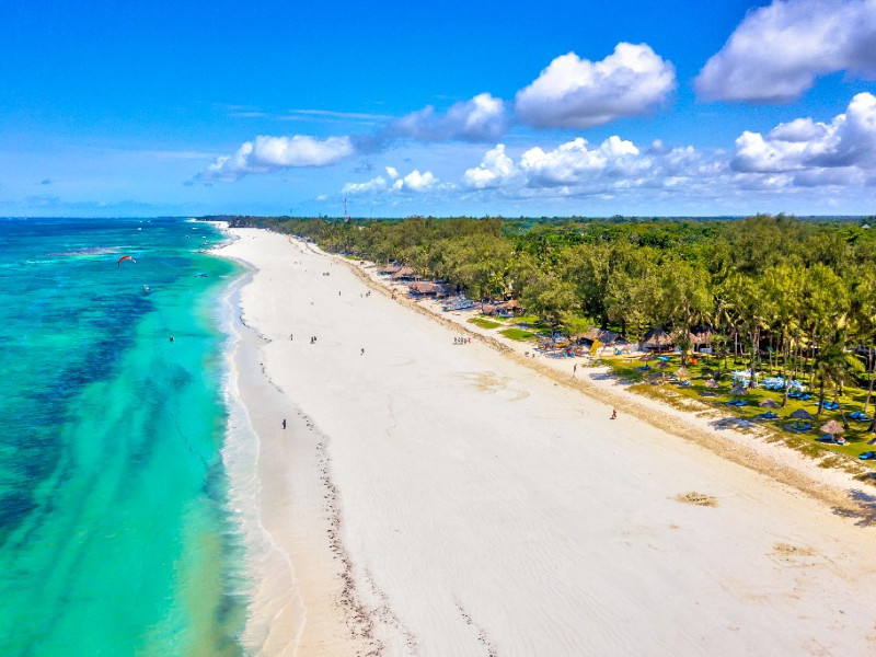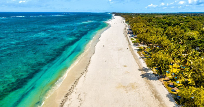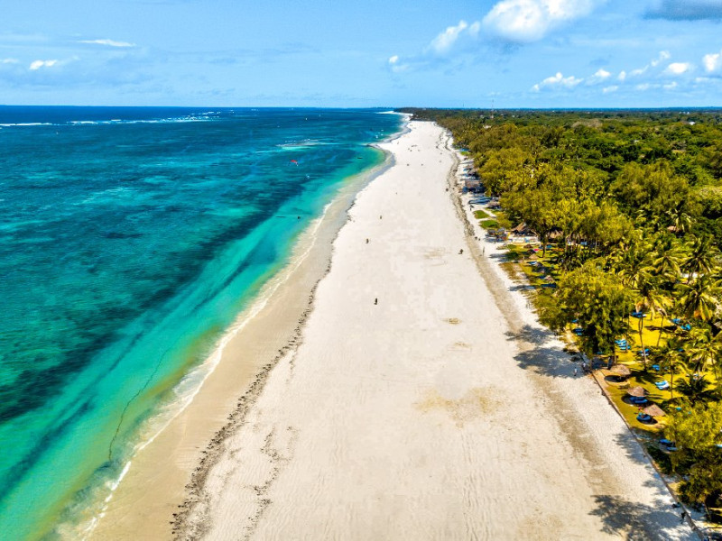 - Plaja larga, cu nisip fin, considerata una dintre cele mai frumoase din Kenya