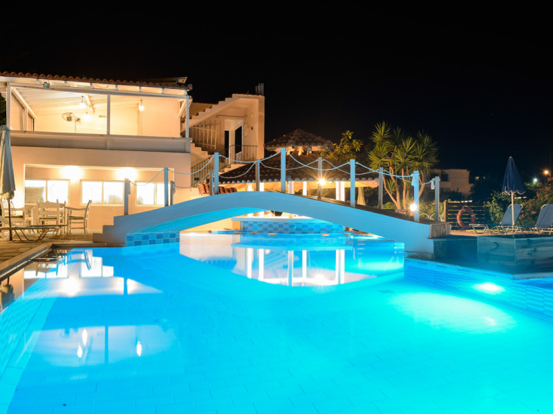The hotel features a swimming pool with sun umbrellas and sun loungers available for free. The pool bar offers refreshment drinks and snacks. There is a reception area, parking area, a sun terrace and a garden. all the studios come with air condition, free WiFi and a balcony. All the studios have a kitchenette, a en suite bathroom and a safe. in a walking distance the guests can find many super markets, cafes and restaurants.