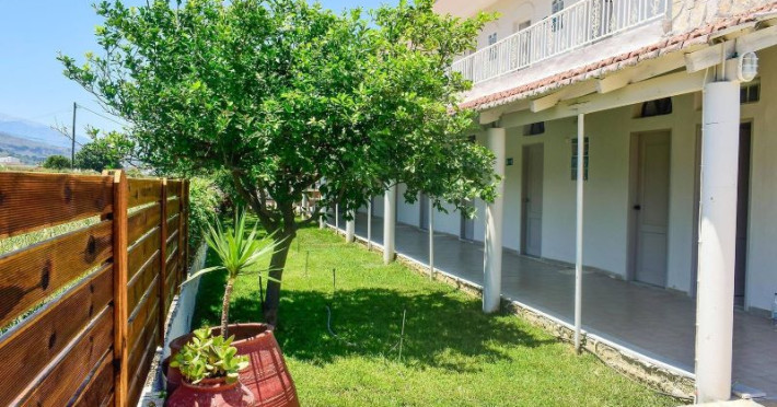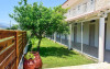 Plaja, la o distanță de 700 de metri, este lată, nisipoasă, cu intrare lină în mare.
