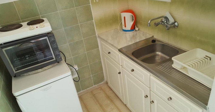 Baie cu dus, frigider, cuptor cu electric, televizor