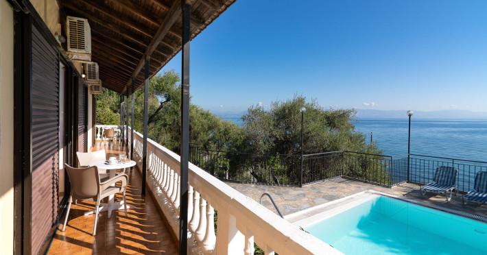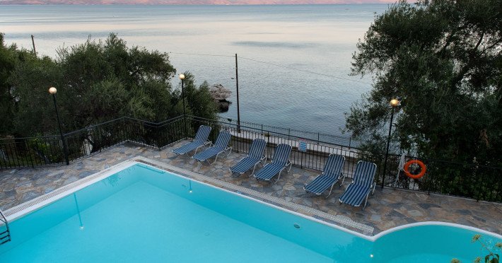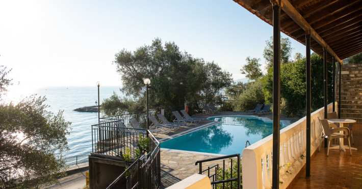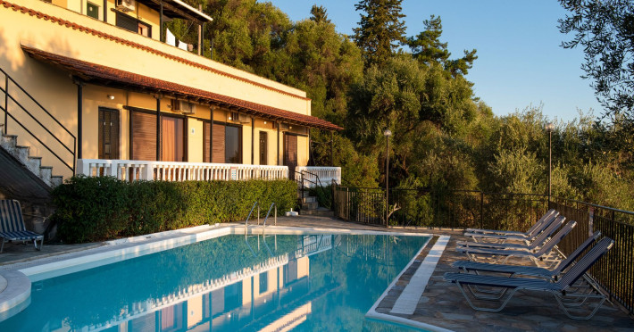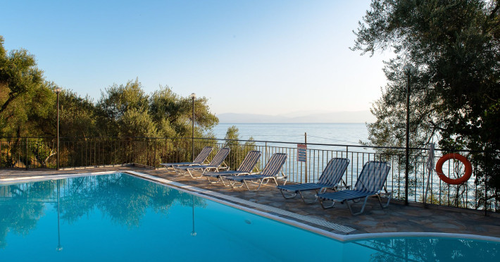 In the facilities of the complex, you will enjoy the large and clean swimming pool, relax on the free sunbeds, gaze the magnificent view of the Ionian Sea, the lush gardens, the quiet and calm environment. Also, the hospitable staff is always willing to answer any questions and provide you with all the information you need. In addition, free parking is available if you are traveling with your vehicle, as well as an eighteen-hour reception. The complex's facilities include, with an additional charge, transportation to and from the airport or port, rental services of vehicles and/or boats, as well as medical care services.