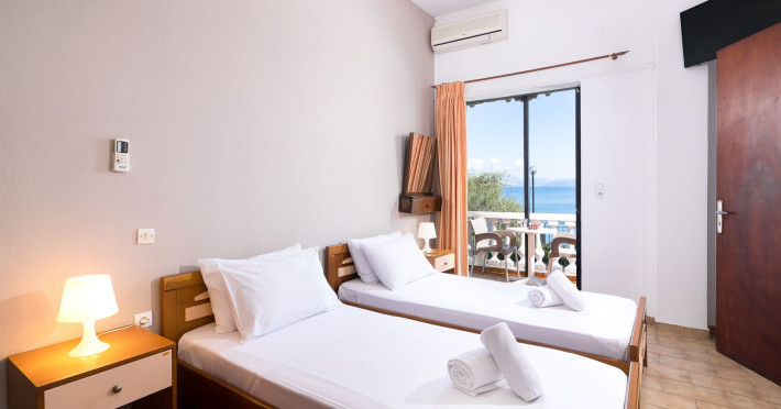 From the beautiful balconies and verandas of the apartments, you can enjoy the magnificent scenery of the sea harmoniously combined with the verdant forest surrounding the complex, a lung of oxygen and rejuvenation. All apartments have a unique, distinctive aesthetic that combines the traditional with the modern, while the earthy shades of decoration are combined with the enchanting hues of the landscape and offer you the relaxation you seek during your holidays. All rooms and apartments have TV, air conditioning, a fully equipped kitchen with a fridge, a private bathroom, and very comfortable verandas and balconies overlooking the sea.
