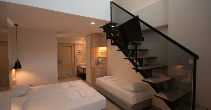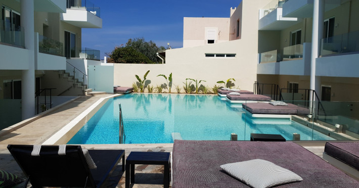 The hotel has been renovated recently and consists of fully equipped studios, apartments and suites. It is situated directly on the quiet beach of Missiria, so it lies 2,5 km away from the touristic village of “Platanes” and 2,5 km from the romantic little town of “Rethymno”.