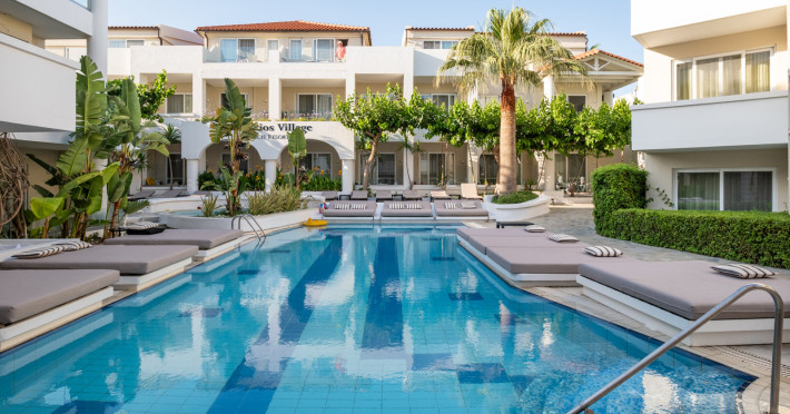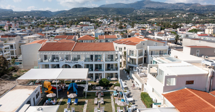 Dimitrios Village Beach Resort & Spa is a hotel divided over several buildings, with a familiar atmosphere, an exquisite greek & Cretan cuisine which is certified by the Greek Tourism Organization and it is surrounded by green.