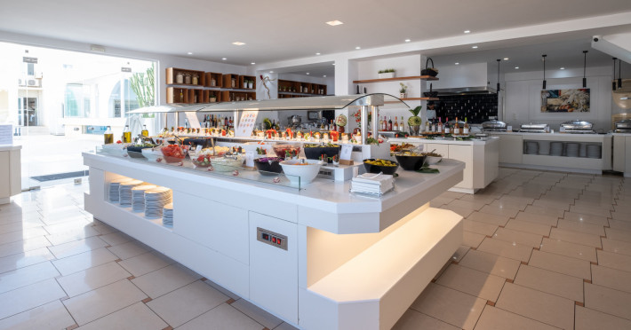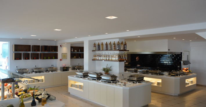 Kids Club, Conference Room, Bar, Private beach, Pool Bar, Cafeteria, Childrens Pool, Garden, Laundry Service, Lobby lounge, Parking, Reception, Restaurant, Self serv. Restaurant, Snack Bar, Swimming Pool outdoor & Swimming Pool covered, Taverna, FREE WIFI in whole hotel /HIGH SPEED with extra charge, Mini Market, Internet Corner.