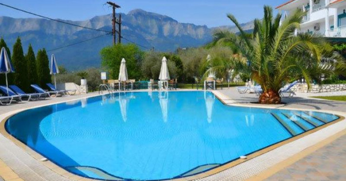 Hotelul Dimitris** este situat la 400 de metri de plaja Golden Beach din insula Thassos.