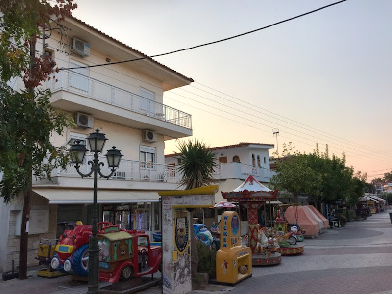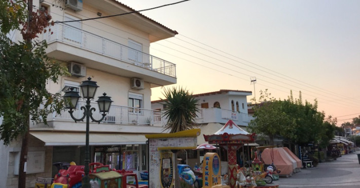 Studio Dimitris este localizat în centrul stațiunii Kalithea, la aproximativ 200m de plaja amenajata cu sezlonguri şi umbrele (contra-cost, de la 7euro/zi/set), iar zona comercială cu magazine și taverne se află chiar la ieșirea din unitate.