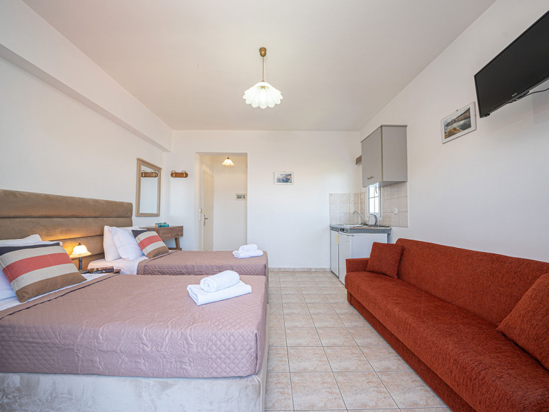 - Reception area with TV, offering the possibility to bring your own drink (since Dimitris Studios do not provide a bar/room service), and enjoy a relaxing time