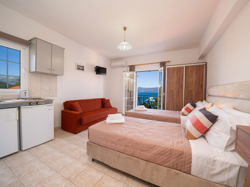Dimitris Studios is a family owned business, where they think of guests as friends, providing them all their attention and care. Dimitris Studios are located in Karavomylos village, just a couple of kilometers outside Sami Port in Kefalonia.