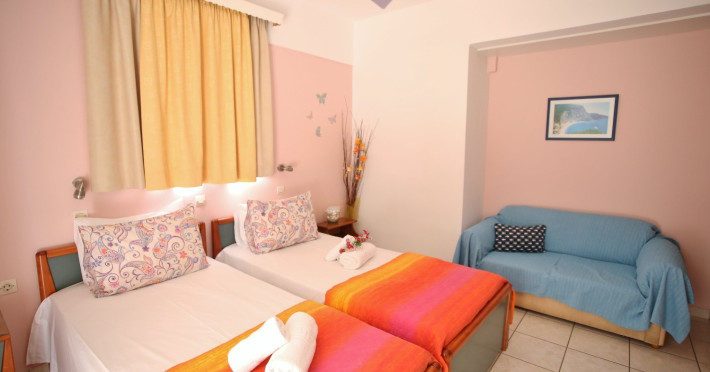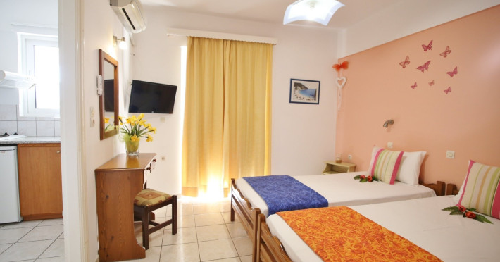 Toate camerele sunt dotate cu TV, aer condiționat (contra cost, 6 euro/zi/camera), minifrigider, chicineta, cuier, plasa de tantari, acces internet (gratuit), terasa/balcon. De asemenea, fiecare apartament are o baie proprie dotată cu cabină de duș, prosoape, uscator par și produse de toaletă gratuite.