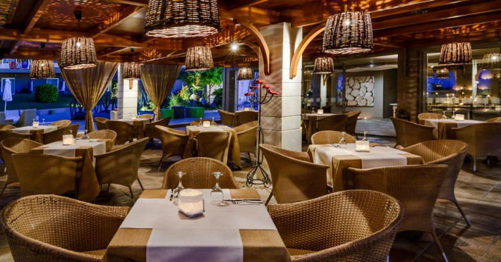 La Dion Palace Resort & Spa oaspeții au la dispoziție 3 restaurante unde pot savura mâncăruri delicioase, în stil bufet sau à la carte. Preparate din bucătăria internațională, grecească și mediteraneană așteaptă să fie degustate în fiecare zi la micul dejun, prânz și cină. Masa poate fi servită atât în interior, cît si în aer liber, pe terasă, în funcție de vreme. 4 baruri, dintre care unul la piscină și unul pe plajă, sunt disponibile cu o ofertă variată de băuturi răcoritoare și alcoolice. Pentru cei cu anumite nevoi de nutriție, Dion Palace Resort & Spa oferă meniuri pentru diete speciale.