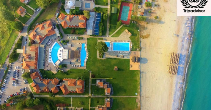 Dion Palace Resort & Spa este un complex hotelier elegant situat pe coasta Rivierei Olimpului, in pitoreasca stațiune Litochoro. Poziționat direct pe plaja cu nisip fin, hotelul oferă oaspeților săi priveliști spectaculoase spre Marea Egee și impunătorul Munte Olimp.