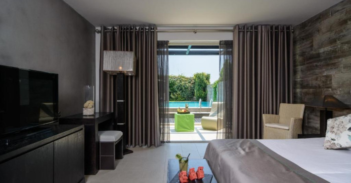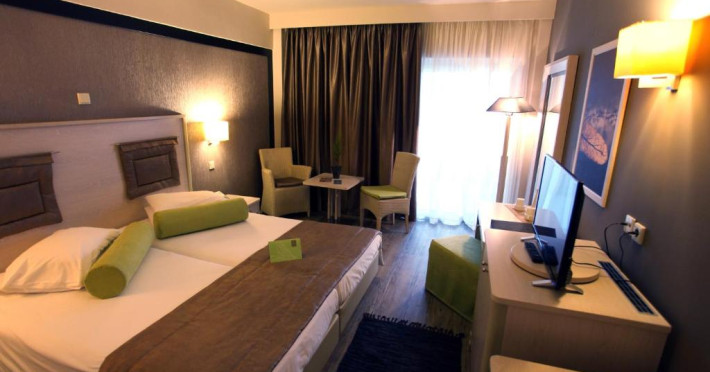 Camerele spațioase sunt decorate in nuanțe mediteraneene și dispun de balcoane private, majoritatea cu vedere spre mare. Facilitățile de top includ o piscină infinity cu șezlonguri și umbrele, un centru spa modern cu tratamente de relaxare, precum și un restaurant principal cu specific mediteraneean și internațional.