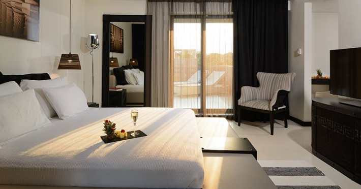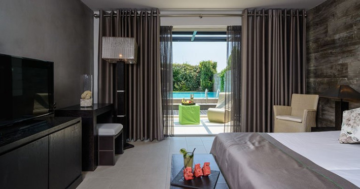 Dubla clasica cu vedere la mare sau piscina: se afla la parter sau la etajul 1, au 2 paturi twin si pot acomoda max. 2 adulti + 1 copil