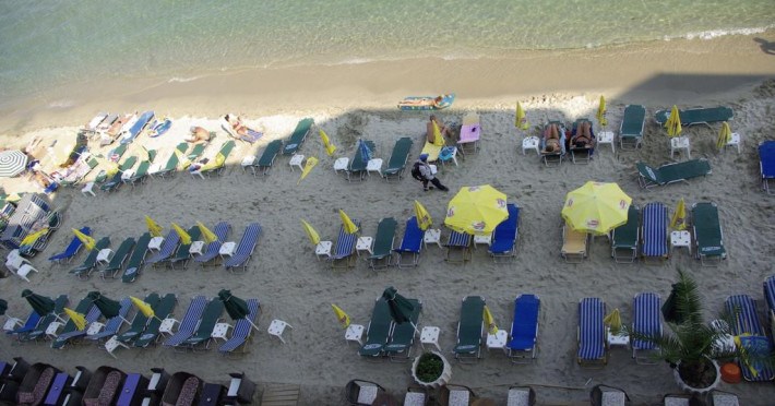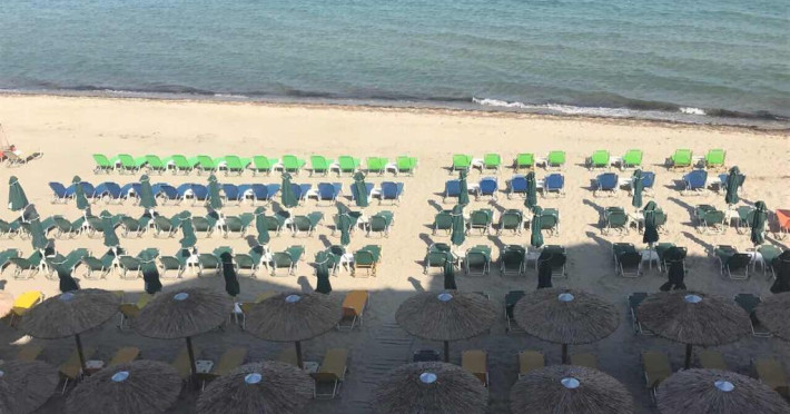 Dion are în apropiere o plajă publică. Pe plajă există șezlonguri și umbrele de plajă contra cost.