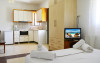 Oaspeţii îşi pot pregăti micul dejun şi alte mese şi le pot savura chiar pe balcon.