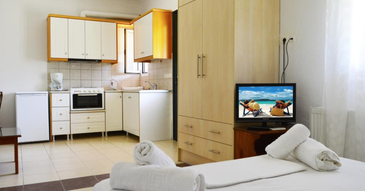Fiecare cameră dispune de mașină pentru preparare cafea sau ceai și fierbător Unele camere au balcon, cu vedere la grădină, unde oaspeții se pot relaxa în compania celor dragi. Camerele confortabile de la Dionysia Rooms sunt dotate cu pardoseală de gresie/ marmură, aer condiționat și Tv. În camere există baie cu cadă sau duș ce are în dotare foehn și articole de toaletă gratuite. Oaspeții au acces gratuit la serviciul Wi-fi în camere. Curățenia in cameră se face zilnic. Toate camerele spațioase de la Dionysia Rooms au zonă de relaxare cu canapea, ceea ce oferă un plus de confort. Fiecare unitate de cazare include o chicinetă utilată cu frigider, plită de gătit și ustensile de bucătărie. De asemenea, este disponibilă o zonă de luat masa. Proprietatea oferă camere pentru familie cu o suprafață mai mare și un număr mai mare de paturi față de cele standard. Se pot rezerva de asemenea camere pentru nefumători.