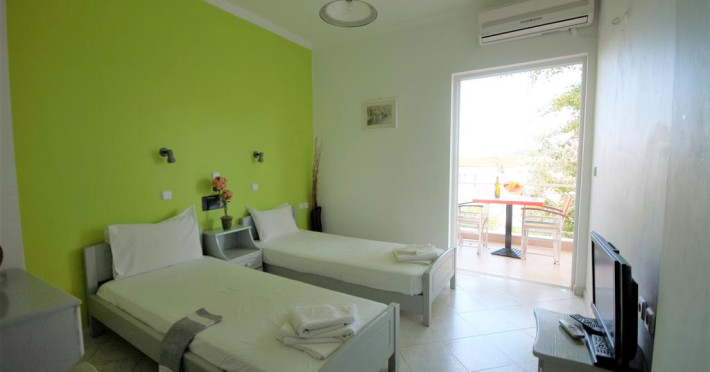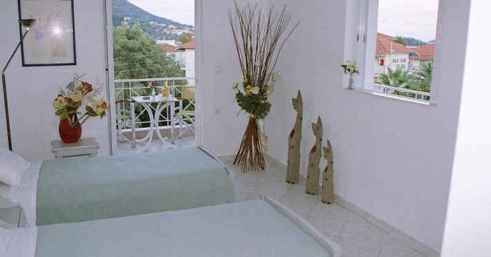 Amplasat în Nidri (Lefkada), Dionysos Studio se află la 350 m de plaja Nidri și oferă apartamente cu aer condiționat, grădină și terasă în aer liber. Proprietatea are servicii de închirieri auto. Se oferă acces gratuit la internet Wi-fi în spațiile publice.