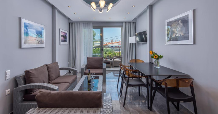 Dionysos Hotel & Suites are în apropiere o plajă cu nisip. Pe plajă există șezlonguri și umbrele de plajă contra cost.