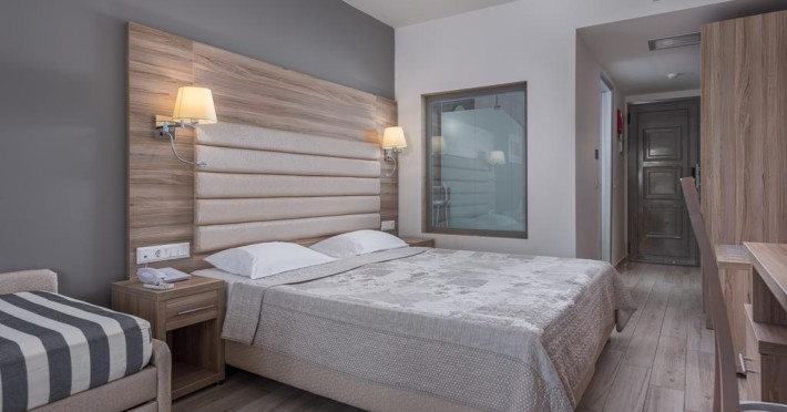 Sunt disponibile 118 camere. Unele camere au balcon cu vedere la grădină sau la piscină. În camere există baie cu duș prevăzută cu foehn. Camerele luminoase de la Dionysos Hotel & Suites sunt dotate cu aer condiționat, Tv și seif. Fiecare cameră dispune de cană pentru prepararea apei calde. Oaspeții pot solicita serviciul de room service pentru a servi masa sau diverse băuturi. Oaspeții au acces gratuit la serviciul Wi-fi în camere. Curățenia in cameră se face zilnic. Proprietatea oferă camere pentru familie cu o suprafață mai mare și un număr mai mare de paturi față de cele standard. Se pot rezerva de asemenea camere pentru nefumători.