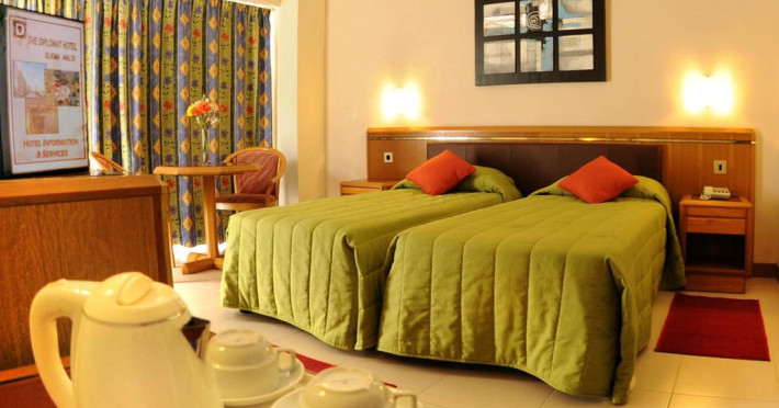 Camerele luminoase de la Diplomat - Sliema sunt dotate cu aer condiționat, Tv și seif. În camere există baie cu duș. Oaspeții au la dispoziție serviciul de room service pentru a servi masa sau diverse băuturi. Oaspeții au acces gratuit la serviciul Wi-fi în camere. Curățenia in cameră se face zilnic. Proprietatea oferă camere pentru nefumători.