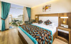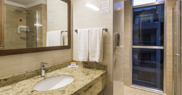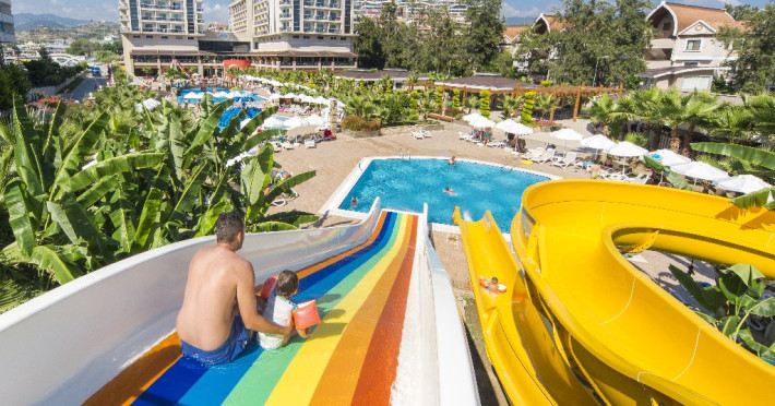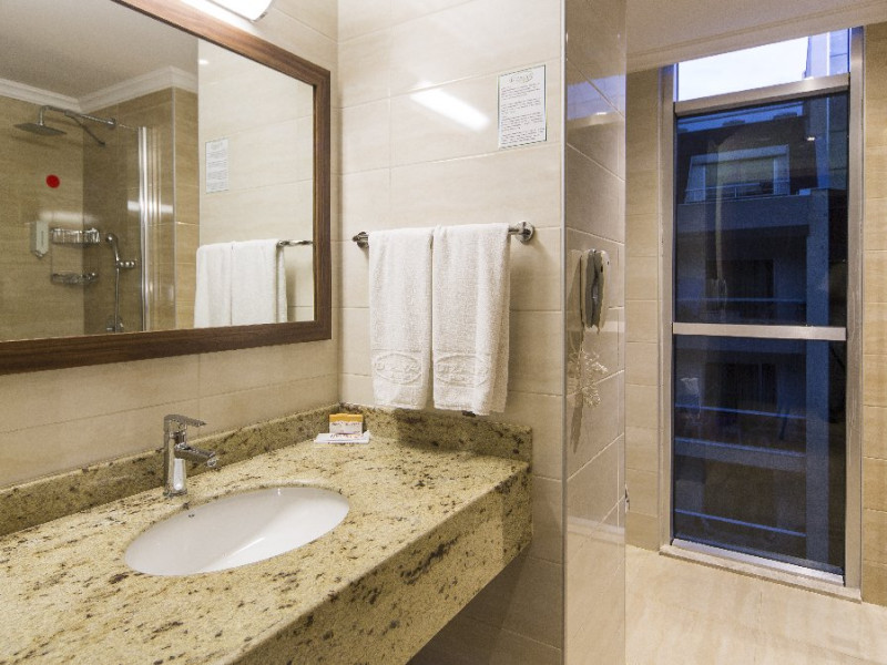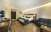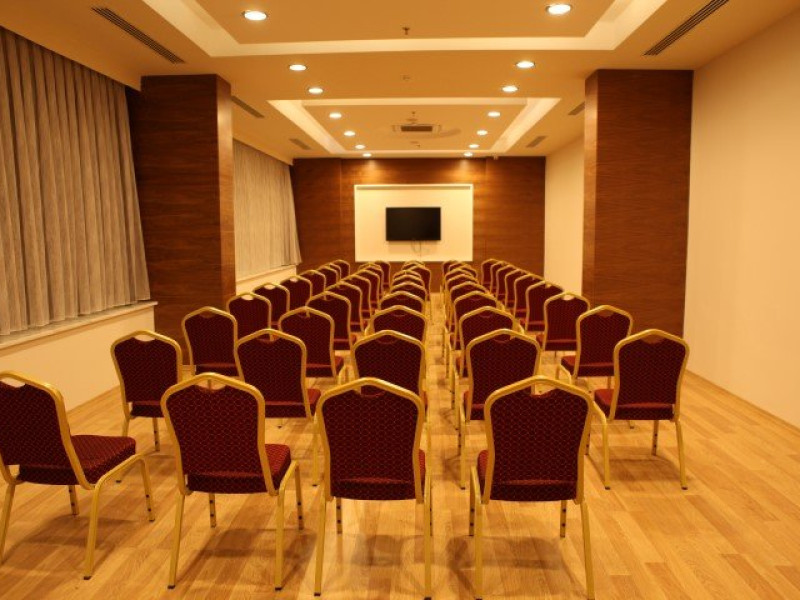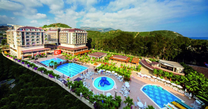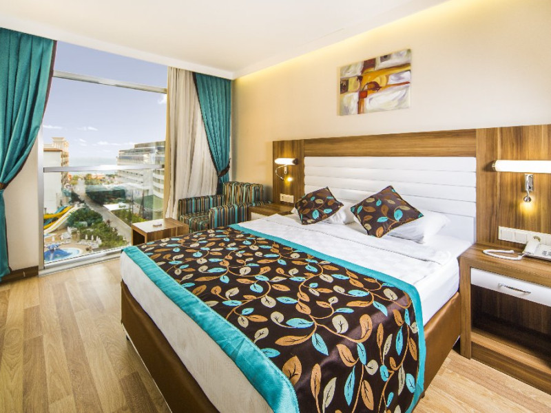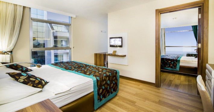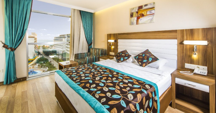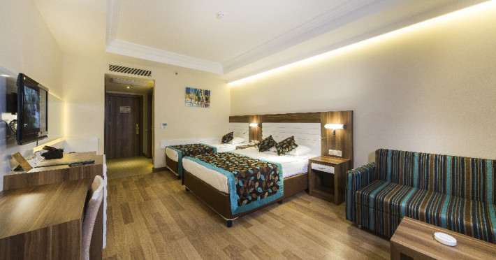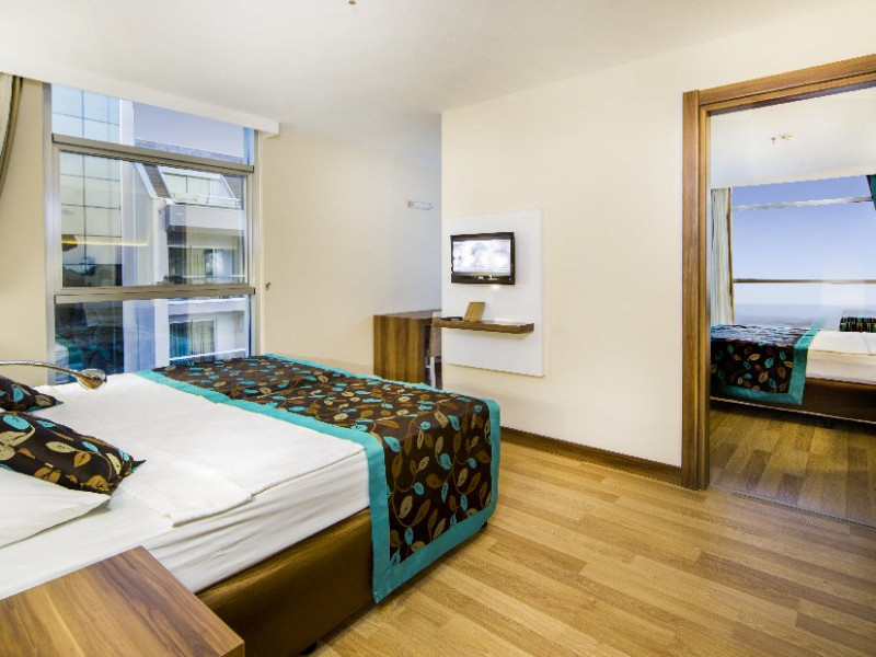 Facilitati camere: Hotelul dispune de un total de 250 camere, impartite astfel: 215 camere standard cca. 22 mp, 32 camere family cca. 34 mp, 3 camere pentru persoane cu dizabilitati cca. 22 mp. Amenajate modern in nuante de maro si turcoaz, camerele hotelului Dizalya Palm Garden sunt dotate cu TV cu ecran plat cu canale prin satelit, minibar si acces gratuit la internet Wi-Fi si au baie privata cu dus sau cada. Unele camere ofera si vedere la mare.