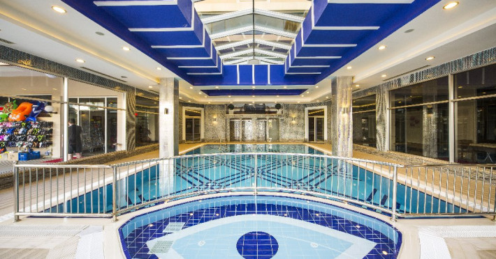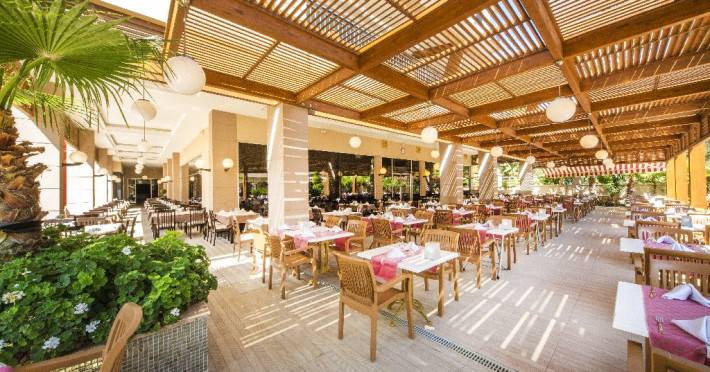 Facilitati hotel: Hotelul pune la dispozitia oaspetiilor sai un restaurant principal, doua restaurante a la carte, bar interior, bar la piscina si pe plaja, patiserie. Pentru relaxare sunt ideale piscinele, una in interior si alta in aer liber. Hotelul dispune, de asemenea, si de spatii special amenajate pentru copii: piscina, aquapark, miniclub 4-12 ani, loc de joaca, plus volei de plaja, aerobic, water sports, tenis de masa, teren de tenis, centru fitness, sauna, masaj, coafor.