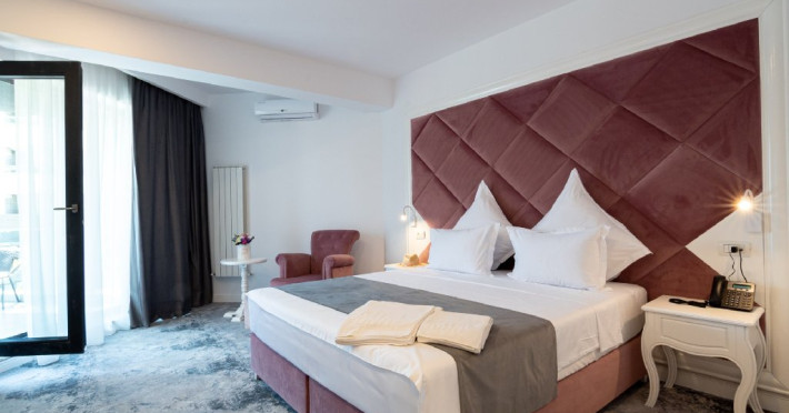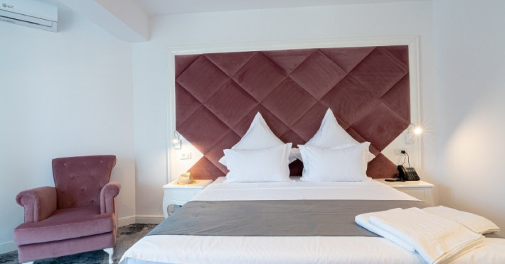 Apartament Premium ofera clientilor sai siguranta si confortul necesar petrecerii unor momente deosebite, remarcandu-se prin amploarea spatiului oferit si prin atmosfera desavarsita. Acestea sunt dispuse la parterul hotelului, dotate cu o camera dubla cu pat matrimonial, un living spatios cu canapea extensibila si dotari ultramoderne.Apartament in suprafata de 50m.