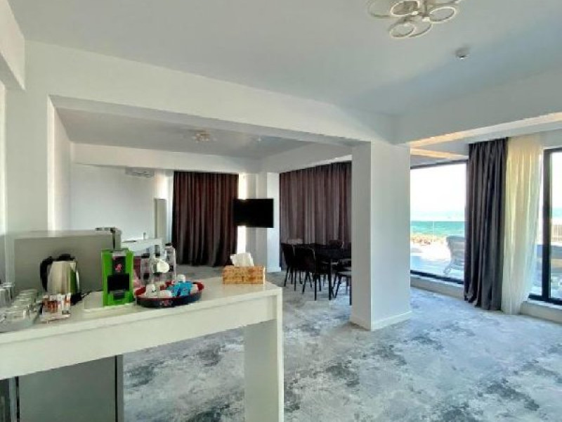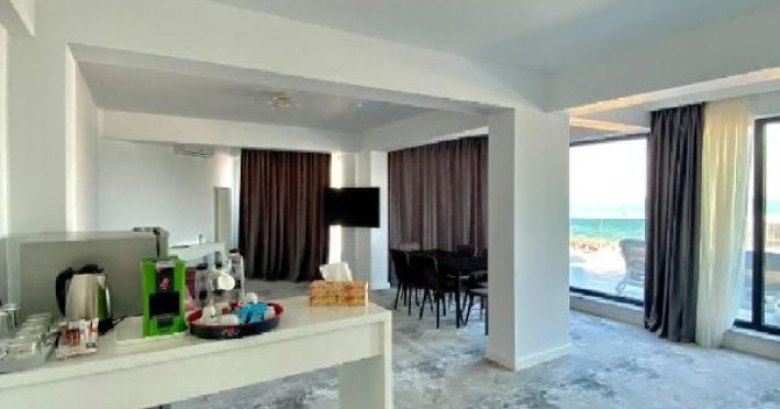 Apartamentul de lux (VIP) a fost creat imbinand intr-o maniera desavarsita arta bunului gust cu principiul confortului si buna-starii. Situat la ultimul etaj acesta are o terasa proprie de unde puteti admira impreuna cu partenerul dumneavoastra frumusetea fiecarei dimineti imbratisand un Rasarit de soare sau promisiunea unei meditatii superbe la Apus. Acestea sunt dotate cu o camera dubla cu pat matrimonial, un living spatios cu canapea extensibila, doua bai si dotari ultramoderne toate insumand conditiile ideale pentru petrecerea unor vacante memorabile.