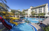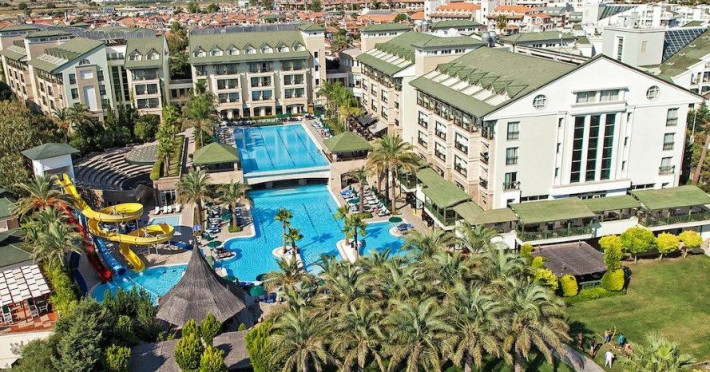 Hotelul dispune de un restaurant principal (tip bufet), 7 baruri, piscine exterioare cu tobogane si una interioara,piscina pentru copii, terasa, gradina, Aqua Park, salon TV, entertaiment, jocuri, loc de joaca, mini club (4-12 ani), sauna si baie turceasca, centru fitness,