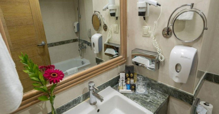 Toate camerele sunt dotate cu baie proprie, uscator de par, TV, mini bar, aer condiționat centralizat, seif, balcon, room service (contra cost).