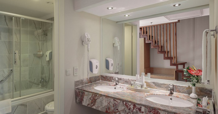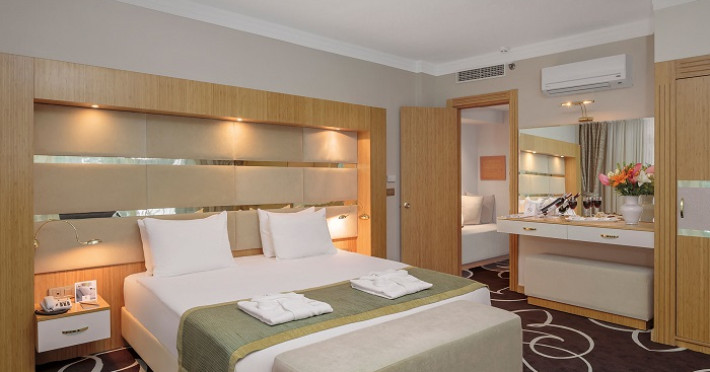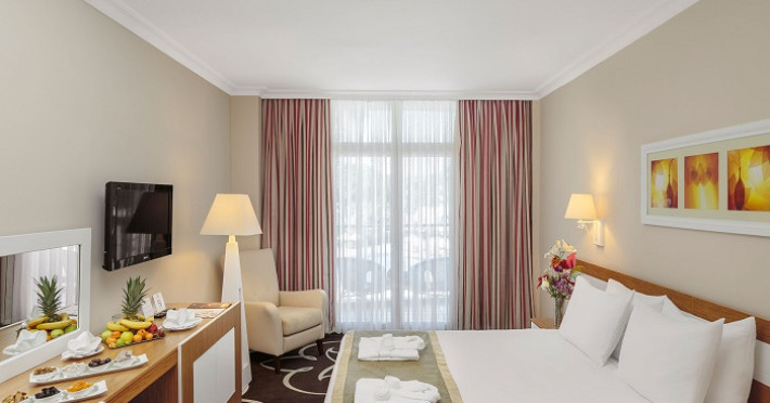 Toate camerele sunt dotate cu balcon/terasa, baie privata cu cada sau dus, uscator de par, sistem de aer conditionat centralizat, TV LCD prin satelit si canale de muzica, telefon direct, mini bar (apa, apa minerala, bauturi racoritoare si bere realimentat zilnic), ceai si cafea, seif, covor sau podea ceramica, conexiune la internet Wi-FI.