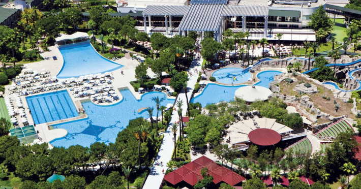 Facilitati: Restaurant principal - servicii tip bufet, restaurante A'la Carte Vivaldi - specific italian, Sofra - specific turcesc, Dragon - specific Far East, The Mariner - pescaresc, Piano bar, lobby bar, bar la piscina, bar pe plaja, disco bar. Contra cost: servicii medicale, centru de afaceri, telefon, fax, internet cafe si jocuri pe calculator, spalatorie si curatatorie, baby sitting, mini market, magazine, salon de coafura, rent a car. Conexiunea la internet Wi-Fi este disponibila gratuit in tot hotelul.
