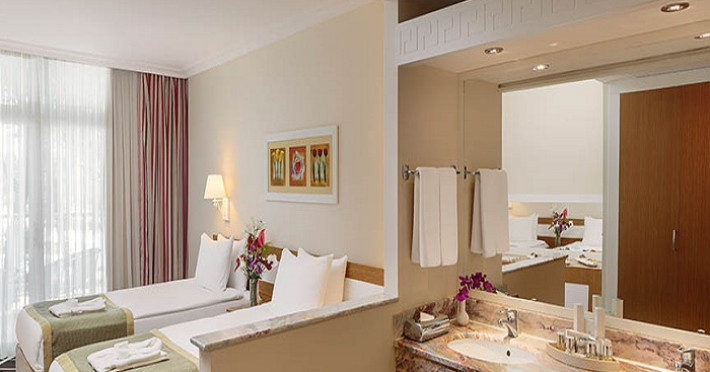 Servicii: Ultra all inclusive - tip bufet pentru mic dejun, mic dejun tarziu, pranz, cina, cina tarzie, gustari in timpul zilei, inghetata intre anumite ore la Patiserie, toate bauturile locale si unele standard din import alcoolice si racoritoare, sucuri din fructe proaspete in timpul micului dejun. Nu sunt incluse in concept: bauturile speciale din import de lux, vinuri speciale si imbuteliate, restaurantele A'la Carte sunt cu rezervare in prealabil, sucuri proaspete din fructe, narghilea, room service.